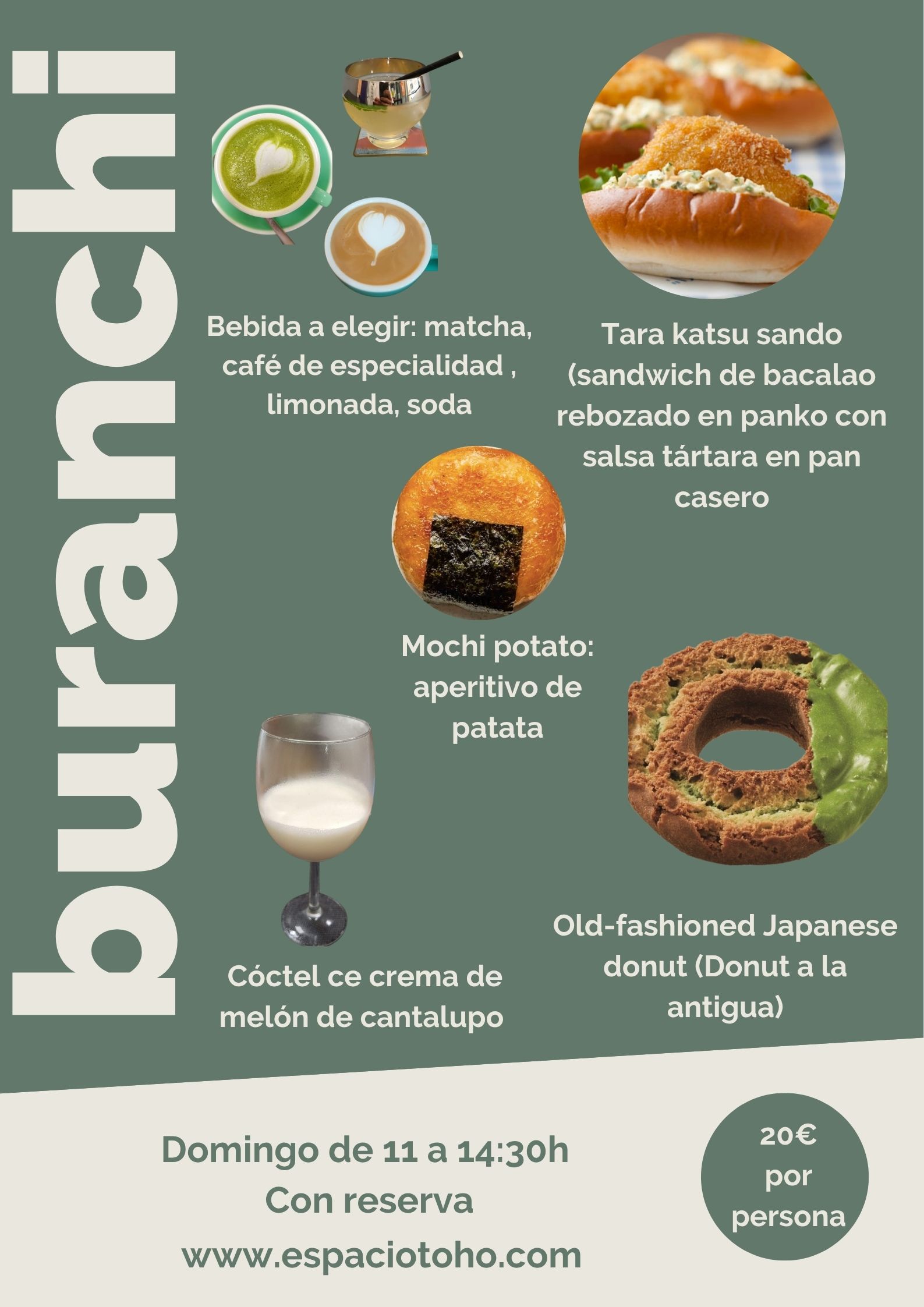 El domingo de 11 a 14:30h disponemos de buranchi, brunch japonés (con reserva).