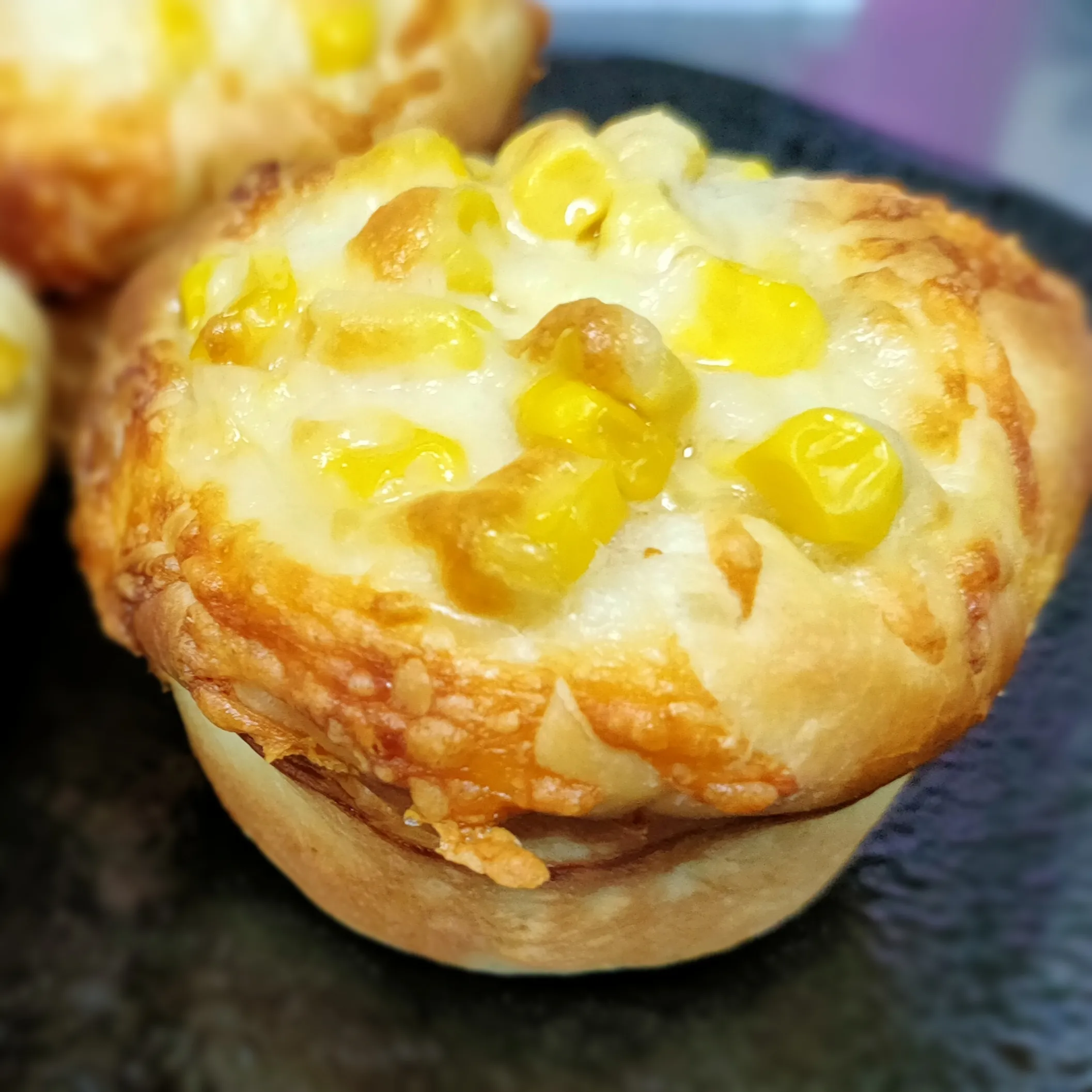Pan casero con maíz, mayonesa japonesa y queso rallado.
